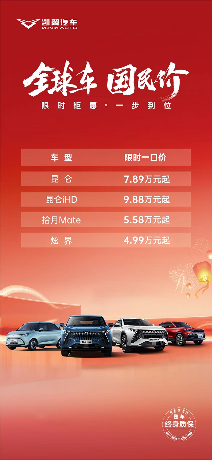 同时,凯翼汽车正式发布,旗下全系车型提供终身质保政策。